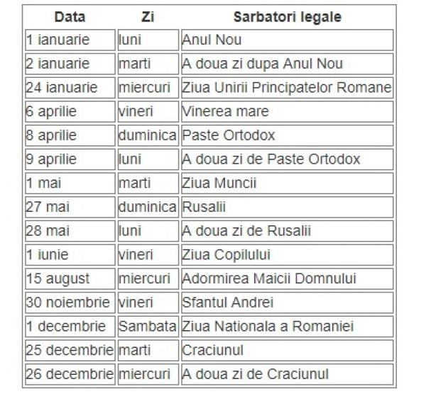 Este un calendar actualizat cu toate sărbătorile legale nou introduse. Zilele libere în 2018 în românia.